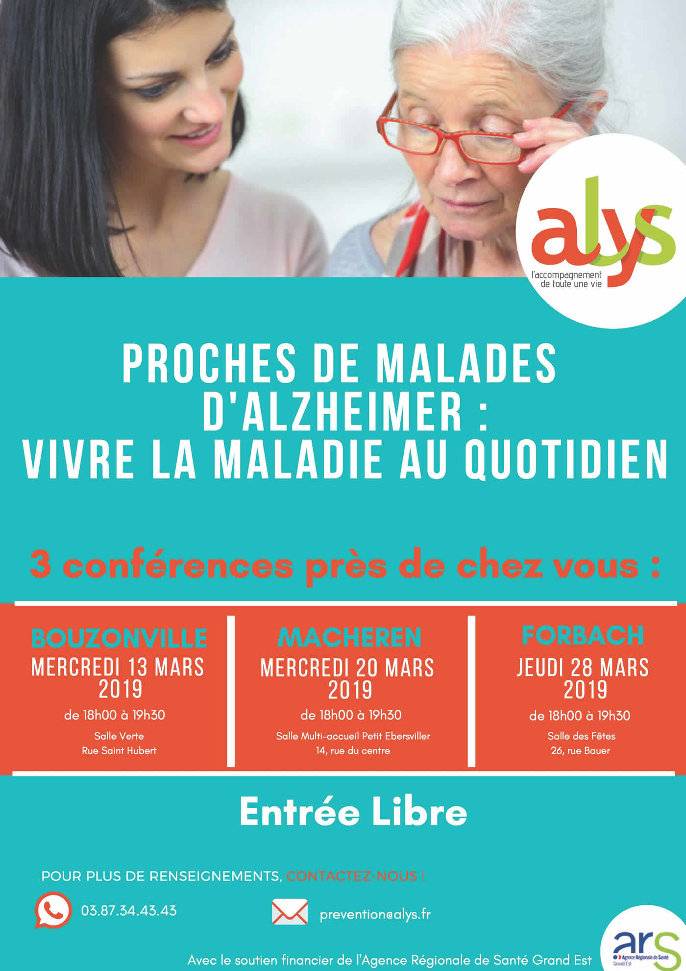 Dates des conférences : BOUZONVILLE : Mercredi 13 mars 2019, de 18h00 à 19h30 MACHEREN : Mercredi 20 mars 2019, de 18h00 à 19h30 FORBACH : Jeudi 28 mars 2019, de 18h00 à 19h30 |